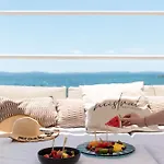 There are 252 rooms with a balcony and a dressing area. Some of them offer a flat-screen TV with satellite channels, along with a coffee maker. They include an electric kettle and glassware. A roll-in shower, along with such comforts as dressing gowns, are also provided. Some rooms open onto the sea. Looking onto the sea, the deluxe apartment features kitchen with an electric kettle and glassware.